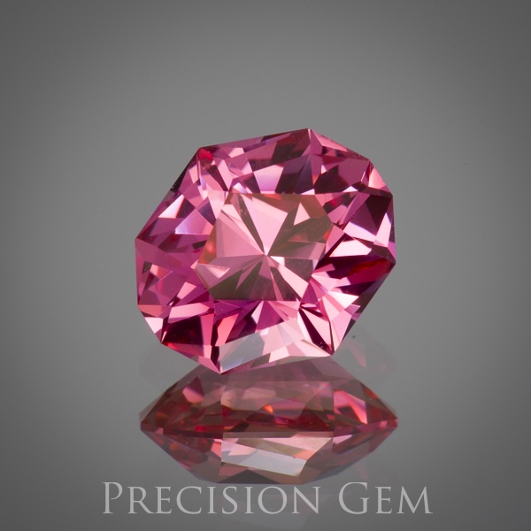 This new material a light peach with a tough of orange and pink. Similar to the padparadasha colors, but a little too light to be considered a true pad. The first image is an 8.65 mm gem cut in my Penta 80 design.