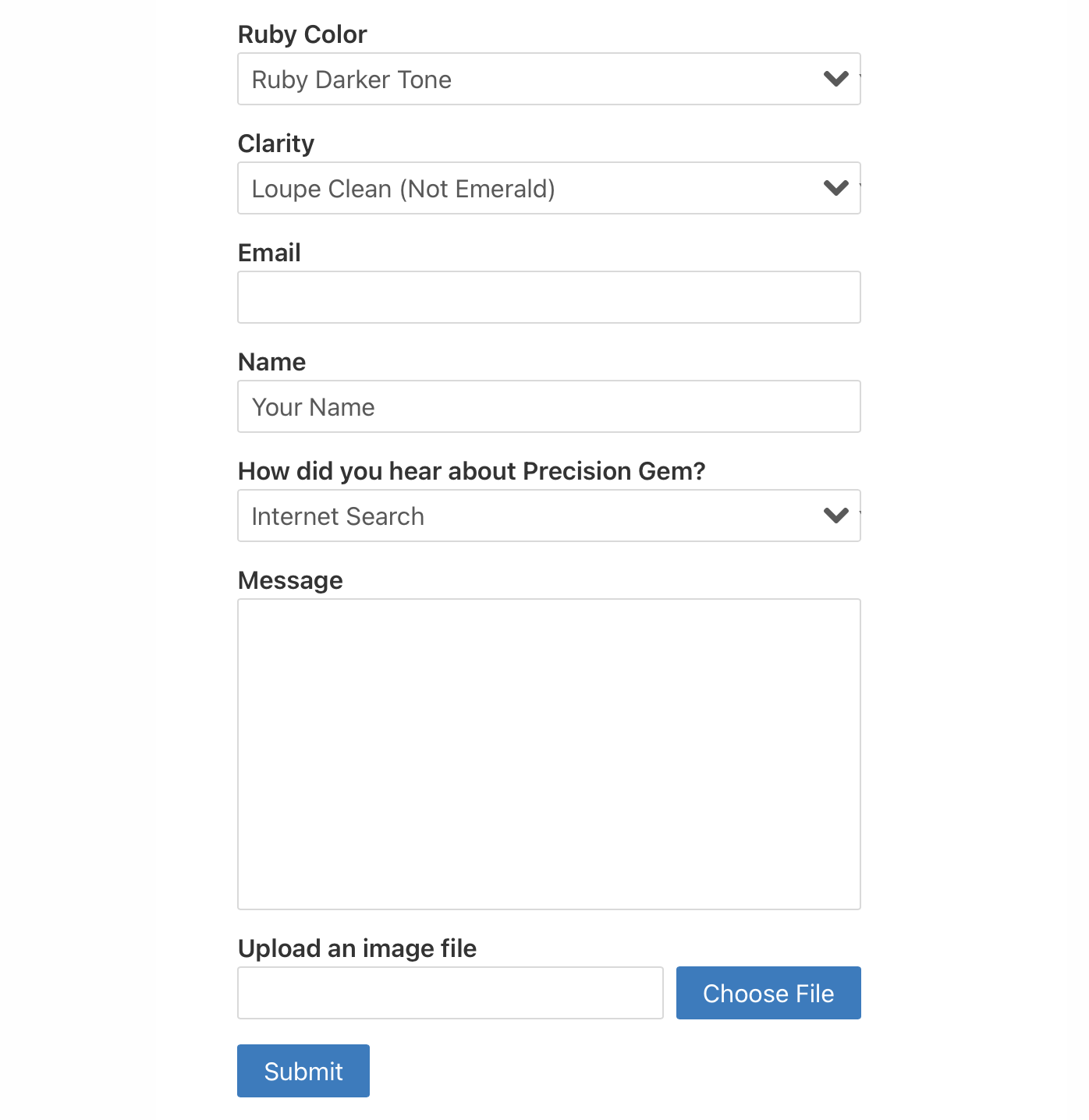 Once you have decided to go ahead with a stone click on the Submit button to send me what you have configured, and then ONLY after we agree on the size and shape, make a deposit to hold the rough and your place in any cutting queue that may exist.