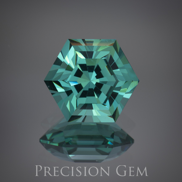 Yttrium Aluminum Ceramic has the cubic crystal structure of natural garnet. Often called synthetic garnet. These stones are very hard with a hardness of 8.5. This material has been very popular. Stones in person have more 'punch' than the camera can capture. This color simulates a fine blue/green Paraiba tourmaline. YAC is produced by heating YAG powder under pressure.