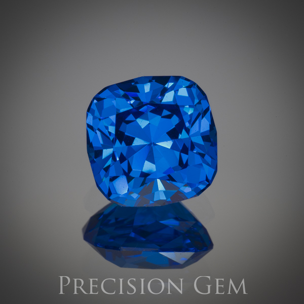 Yttrium Aluminum Garnet has the cubic crystal structure of natural garnet. Often called synthetic garnet. These stones are very hard with a hardness of 8.5. This material has been very popular. This material is a vivid cobalt blue color. The square cushion is 8.5 mm.
