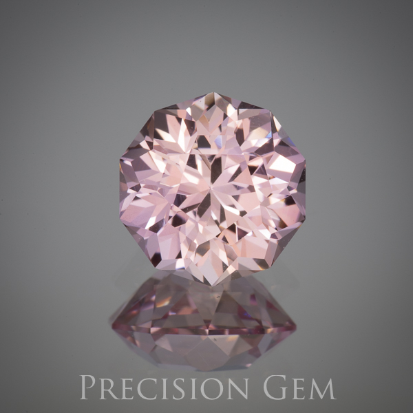 This new material a light peach with a tough of orange and pink. Similar to the padparadasha colors, but a little too light to be considered a true pad. The first image is an 8.65 mm gem cut in my Penta 80 design. Flame Fusion process